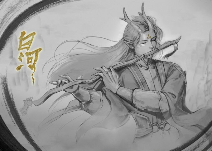 Since this tag #artistsontwitter is trending I'll post a original illustration of one of my OC BaiHe (白河) I'll find some time to upload some personal work in the near future😂