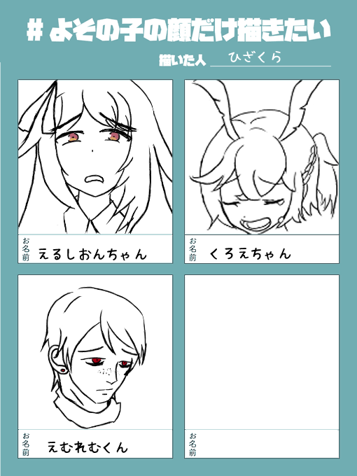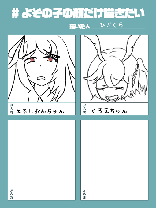 #よその子の顔だけ描きたい 練習に貸してくれ。 もちろんクオリティの保証はない。 何故ならば!緋桜は絵が下手なので!
