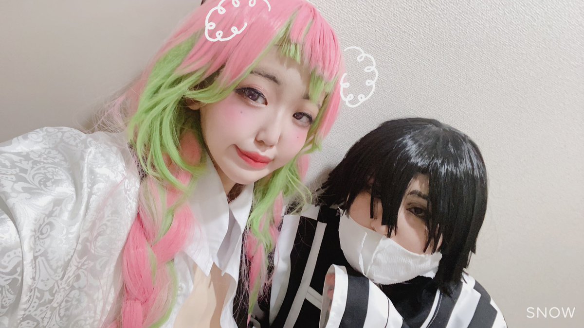 鬼滅の刃 甘露寺蜜璃🌸:向葵 伊黒小芭内🐍:霜月葵 @Simozuki_Aoi ⚠️カラコンなし #コスプレイヤーと繋がりたい #コスプレ初心者 #コスプレイヤーさんと繋がりたい #鬼滅の刃 #甘露寺蜜璃 #伊黒小芭内
