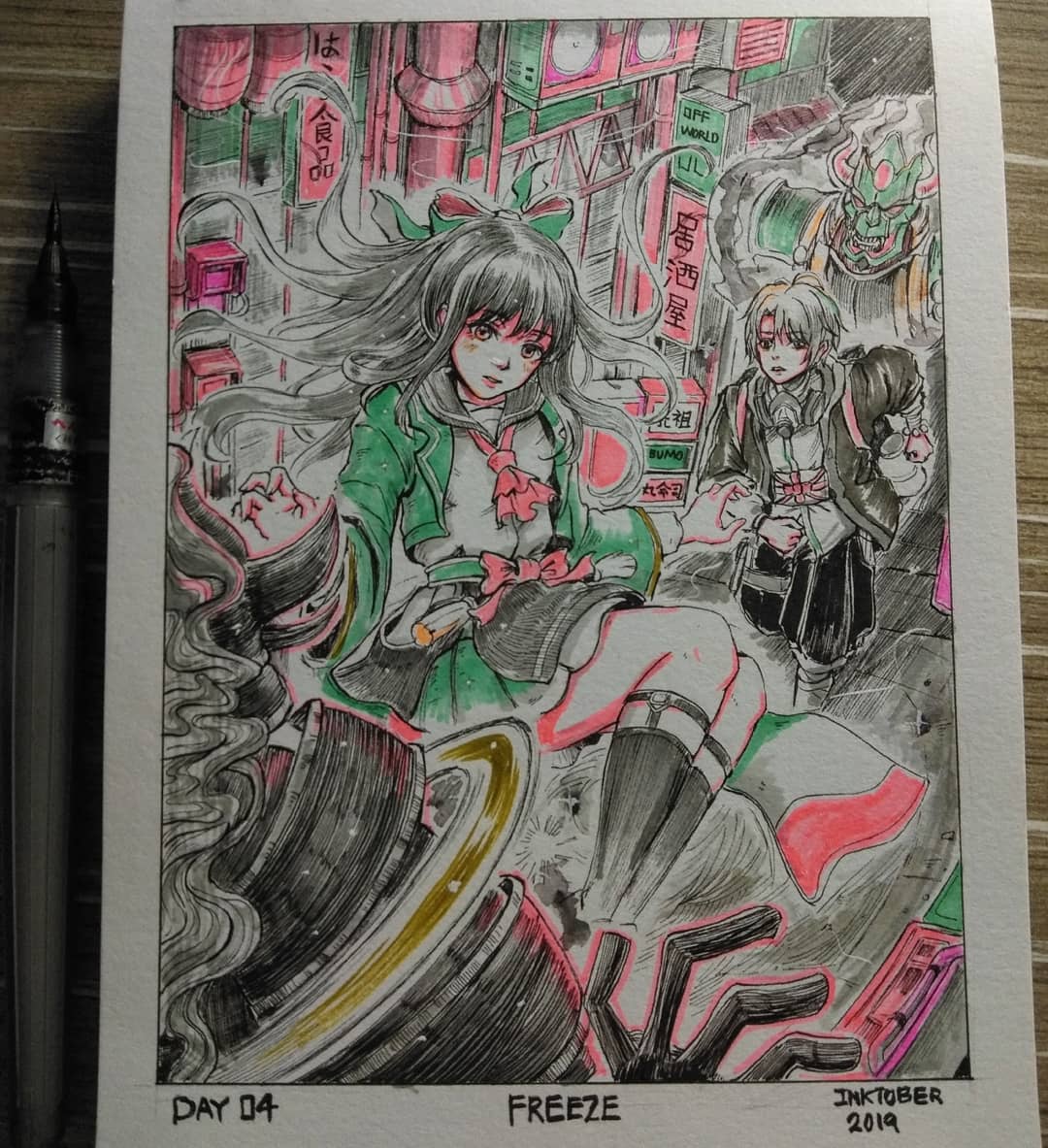 Inktober day 4 : Freeze "Without realizing, the mysterious lady has awaken and it freezes both of the parties without knowing what's gonna happen next " #inktoberday4 #inktober #Inktober2019 #inktoberfreeze