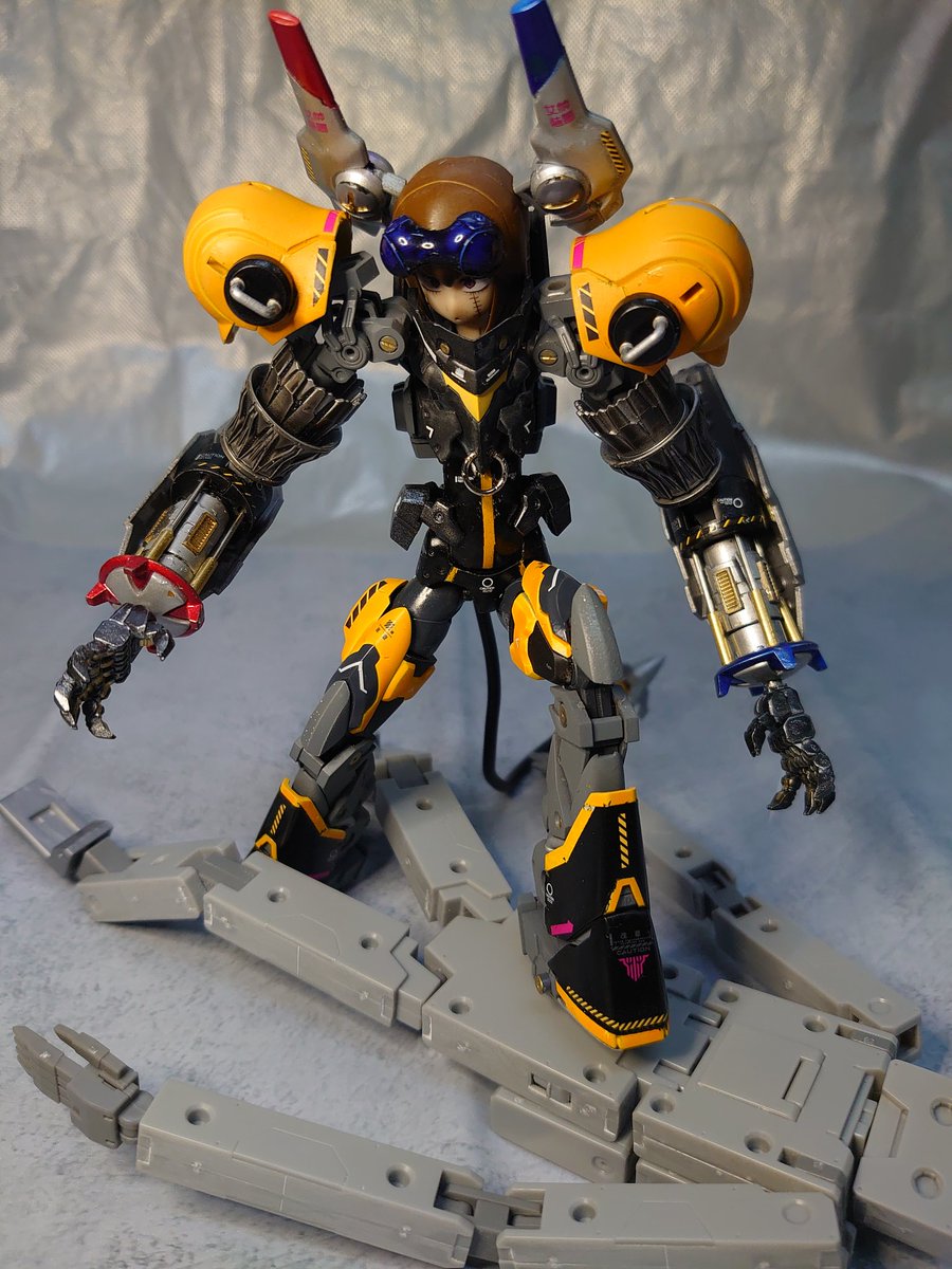 #これがこうなってこうじゃ #メガミデバイス ・「カエルキャラならメカクレじゃん!」的な考えで素体をランチャーに ・いつもなら大体予定通りに進まないもんなんだけど今回はわりと最後までイイ感じに ・個人的にはMSGミサイルユニットを使ったカエル脚が改心の出来 ・塗り残しはご愛嬌