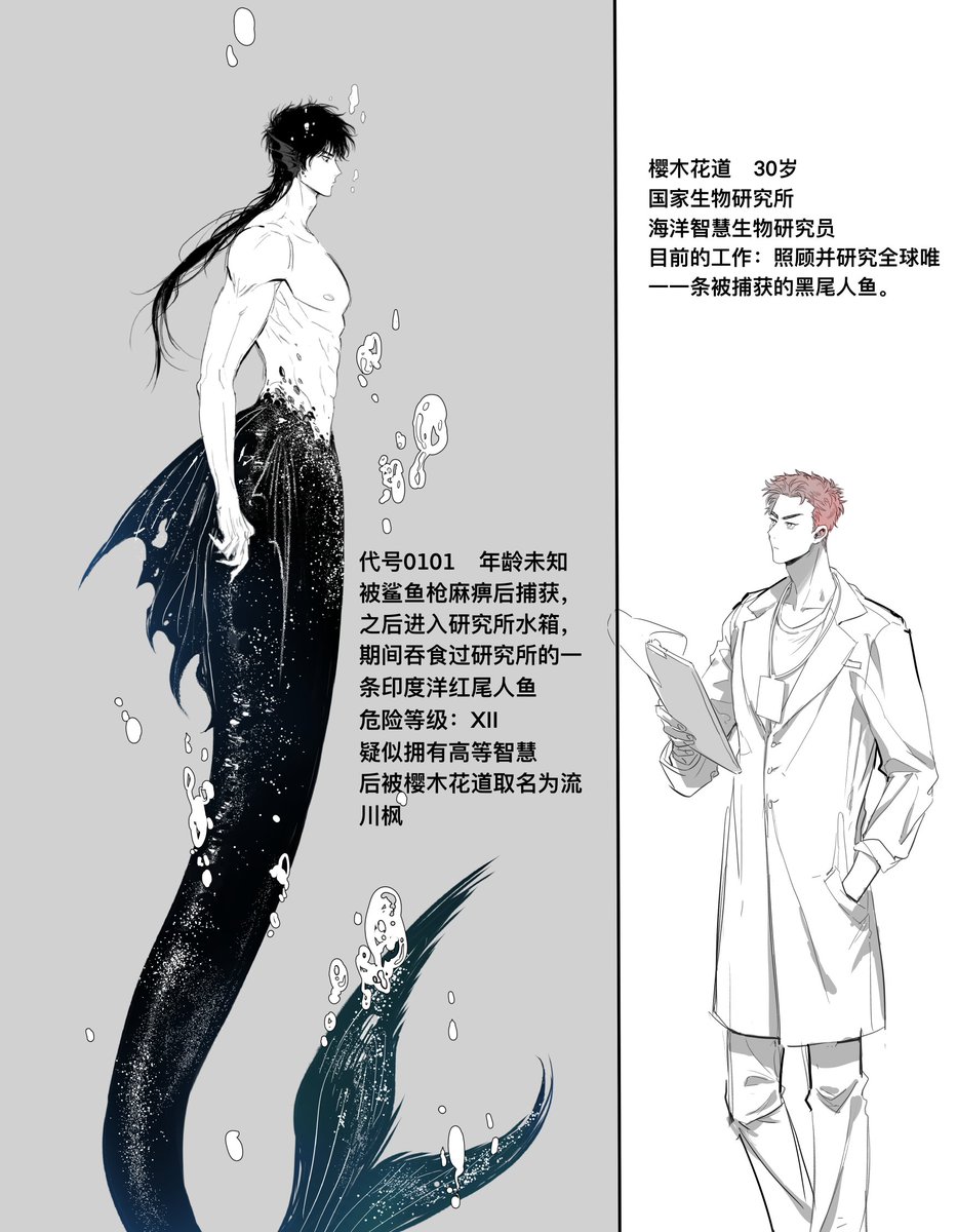 101 271 #流花 人鱼流川和研究员樱木 (德萨罗人鱼AU) 人鱼是被国家生物研究所捕获上来的,樱木虽然不赞成这样粗鲁的举动但是也没有办法,只能用自己的方式去照顾他,并寻求可以让他回归海洋的办法。但樱木不知道的是,拥有高等智慧的流川似乎是故意被捕获的……? 23/07/10 01:10