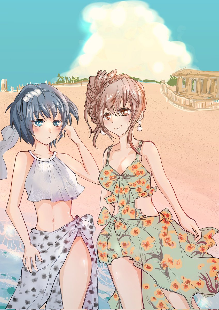 アホなヤツ描いて気分転換したい&最近のマイクロビキニ流行りに乗りたくて落書き。…着せる勇気はまだ、ない。 #すずきつづみ #さとうささら #タカハシ