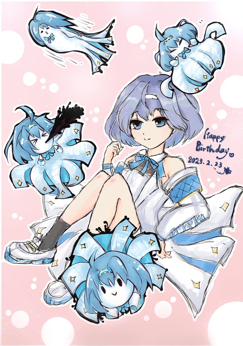 58 159 #すずきつづみ誕生祭2023 #すずきつづみ誕生祭2023 ラフ案とその副産物 つづみちゃんだし、クラゲだよなぁ・・・と描いてたら「これイカじゃねえか!」ってなった。まあいっk 23/02/23 22:09