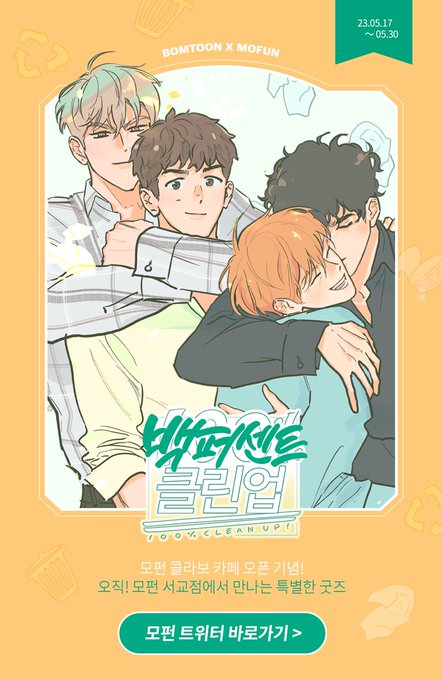 봄툰과 모펀에서 아주 큰 단독 이벤트를 준비해주셨어요! 🎉백퍼센트 클린업 🎉🥳무려 12화 무료이벤트!! 찍먹의 기회..! bomtoon.com/event/100Clean…