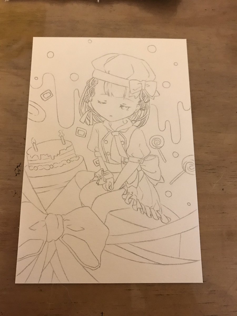 アナログ線画をデジタルで塗るのとかもやりたいなぁ…特に菓子防具いばらちゃん… #シノアリス_ファンアート