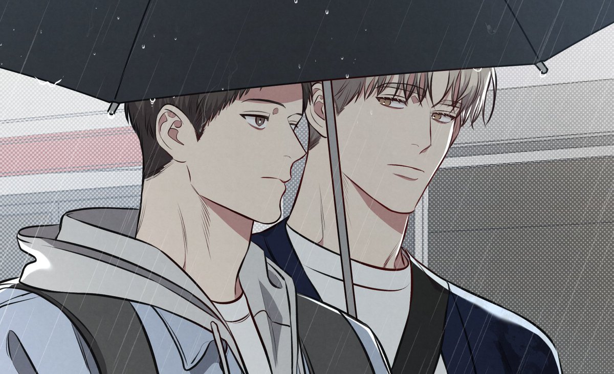 모 작가님께 왼쪽에 있는 그림 보정까지 다하고 나서 보니까 도후가 우산 밖에 있다고 말씀드렸더니 오른쪽 짤을 그려주심🤣 twitter.com/Hodot_01/statu…