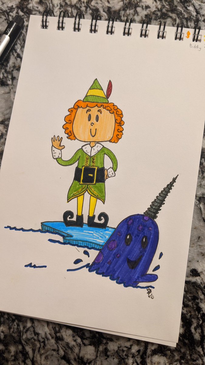 #Inktober Day 25: Buddy. Don't let this fool you, I am not ready for Christmas yet. #BuddytheElf #Inktober2020 #ChristmasDoodle