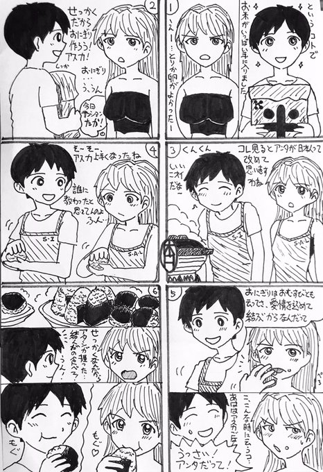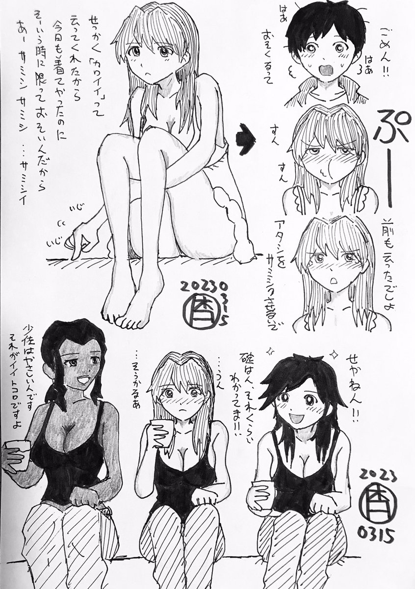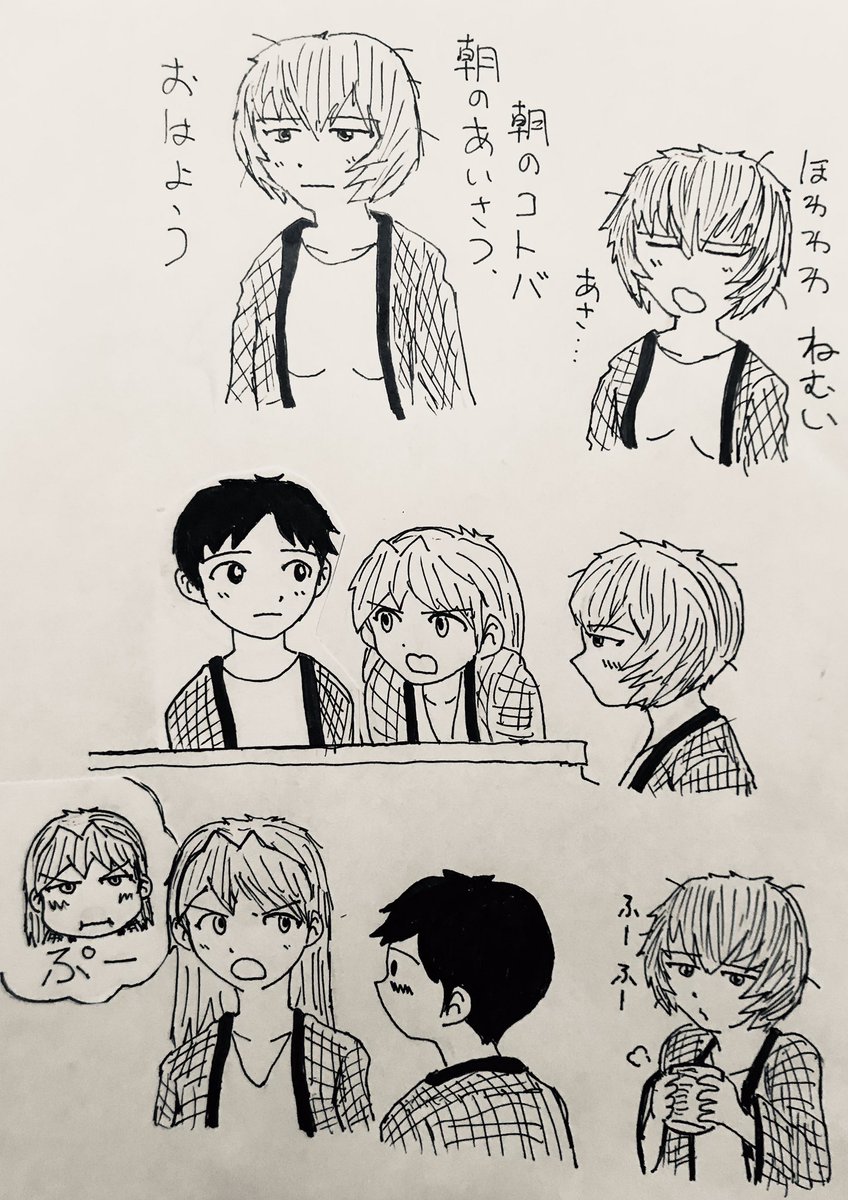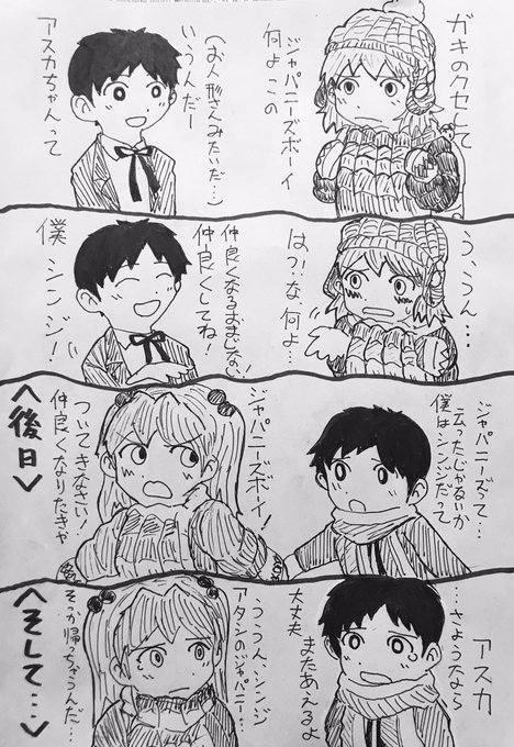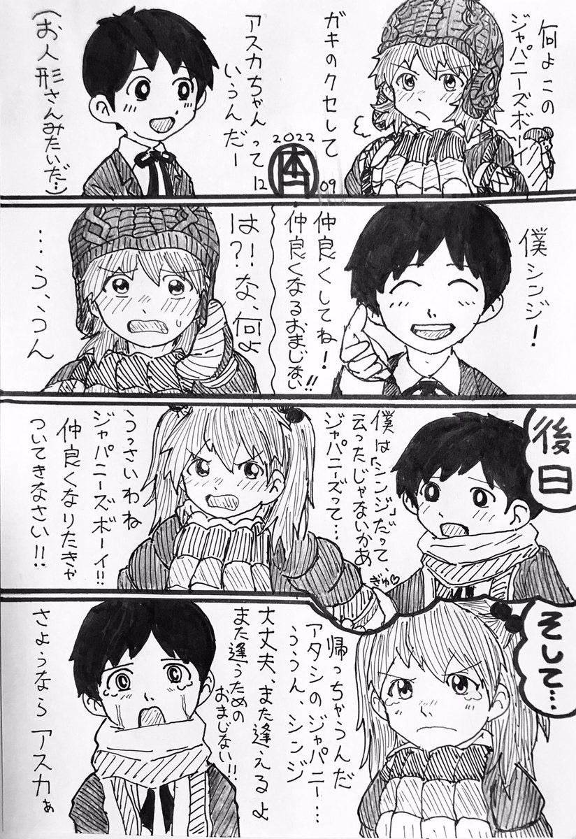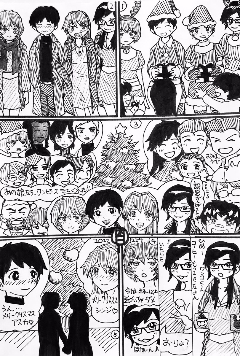 #2022年自分が選ぶ今年の4枚 落書とはいえ200枚以上から迷いに迷ってこの4枚 描けた!という満足はもちろんだけど、可愛いシンジ君とアスカさんやその表情、村の皆など、描きたいものを描いた、そんな基準になりました