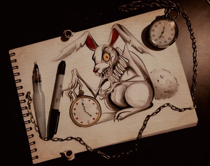 🕰THE HURRIER I GO, THE BEHINDER I GET🕰 New inktober, a cute and spooky rabbit of alice in wonderland 📖 #ArtistOnTwitter #conceptart #art #characterdesign #Inktober2019 #inktober #aliceinwonderland #whiterabbit #halloween #drawlloween