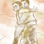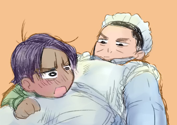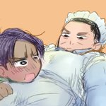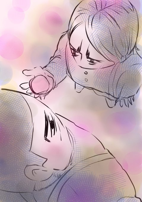 落書き迷走してたらiPad固まってヒヤヒヤした……Σ(゜ω゜)ビクゥ ⤵︎ ︎は、手を繋いだからメ島にややこが宿ったかもしれないと、お腹の音を確認する坊ちゃん( ◜▿◝ )