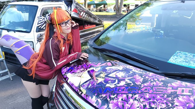 EXPO組再会!! 🐑:ちげなべさん(@tigenabe55) 👯♀️:マシロヤさん:(@mashiroya07) ※掲載許可済み #ぺこらーと #つのまきあーと #TMAF痛車フォトコン
