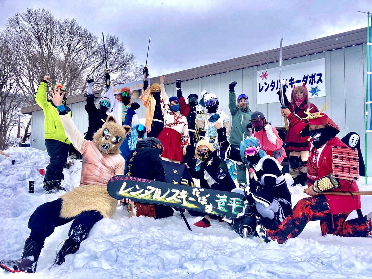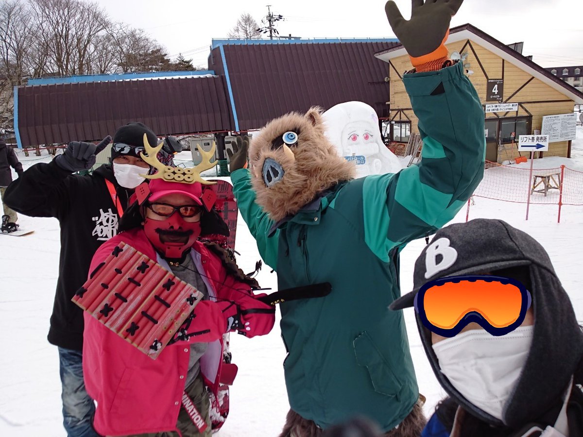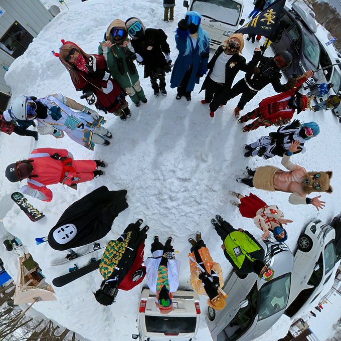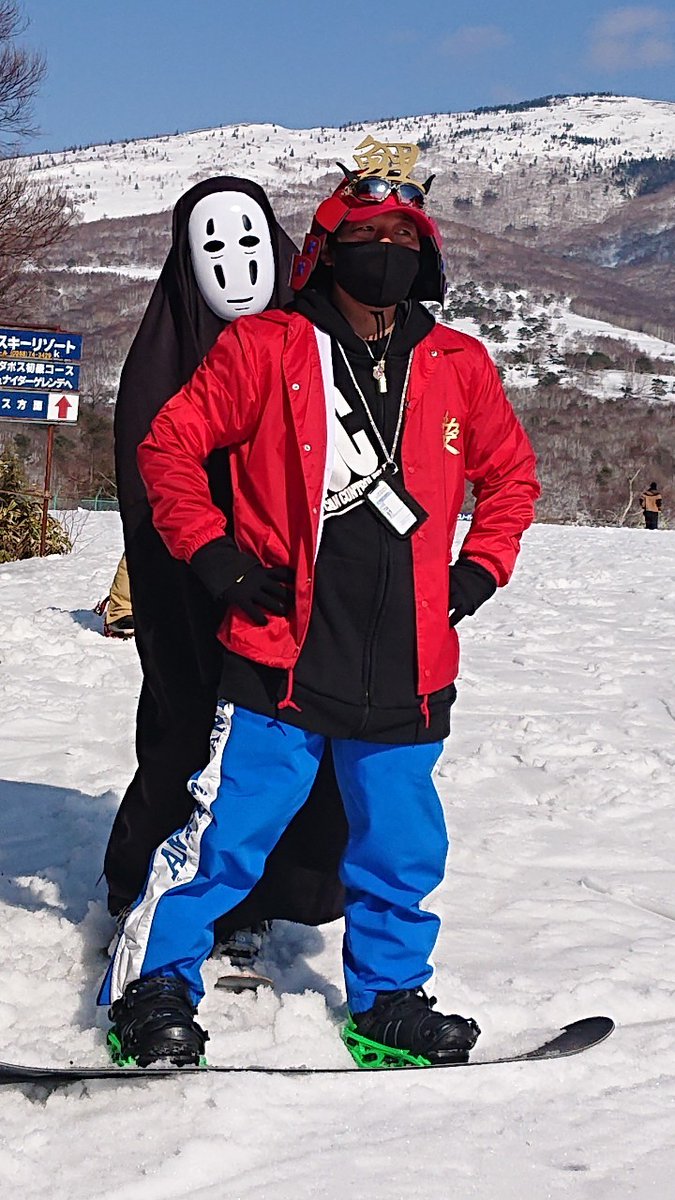 今日の菅平〜♪いつものコスプレ軍団+αと、更にパス研の方達が!!! めっちゃ楽しかった〜♪ ご一緒した方ありがとうございました!また是非お会いしましょう! #菅平 #パス研 #コスプレ #鬼滅 #リゼロ #かおなし #武将 #スノーボード #これが私の知ってるスノーボードw