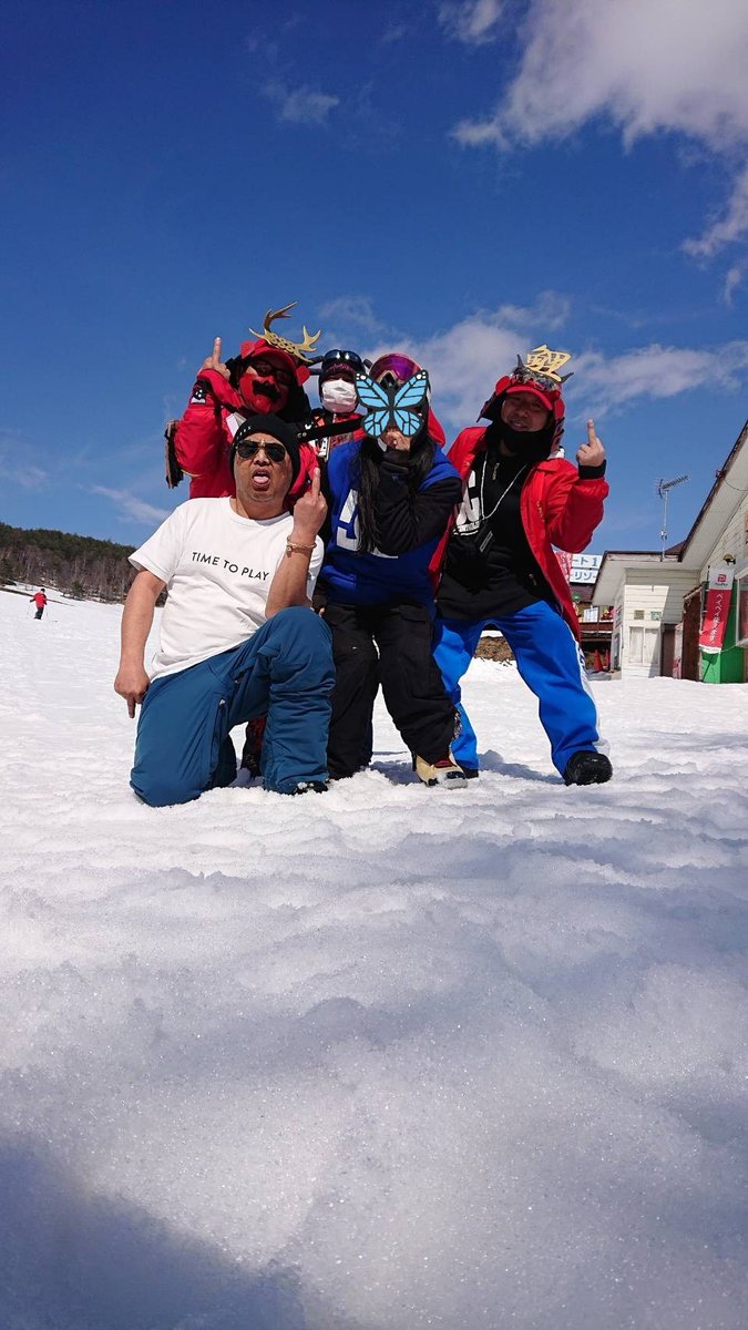 5 31 今日の菅平〜♪いつものコスプレ軍団+αと、更にパス研の方達が!!! めっちゃ楽しかった〜♪ ご一緒した方ありがとうございました!また是非お会いしましょう! #菅平 #パス研 #コスプレ #鬼滅 #リゼロ #かおなし #武将 #スノーボード #これが私の知ってるスノーボードw 21/03/07 17:47