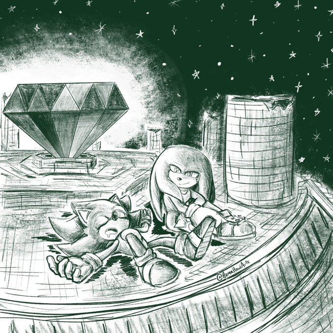 Sketch warmup! Sonic’s making sure his friend isn’t lonely on guard duty #SonicTheHedgehog #KnucklesTheEchidna