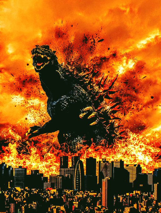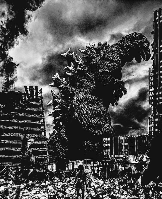 ゴジラの日を記念してシンゴジラのポスター風ビジュアルを作りました。 モノクロ版 #ゴジラ生誕67周年 #ゴジラの日 #オモ写