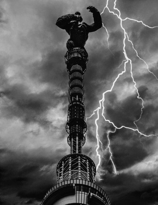 2 6 コング、スカイツリー登頂 LINE Cameraで作ったデジラマです。 モノクロ版 #デジラマ #オモ写 21/10/12 21:01