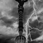 コング、スカイツリー登頂 LINE Cameraで作ったデジラマです。 モノクロ版 #デジラマ #オモ写