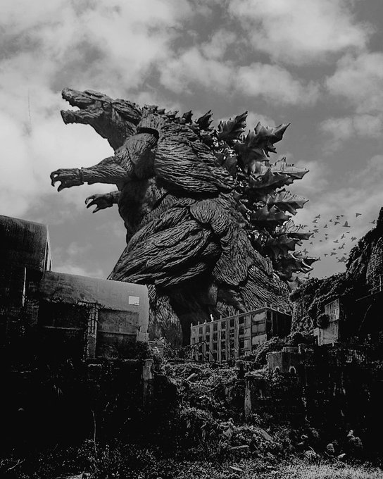 LINE Cameraで作ったデジラマです。 モノクロ版 #オモ写 #デジラマ #Godzilla