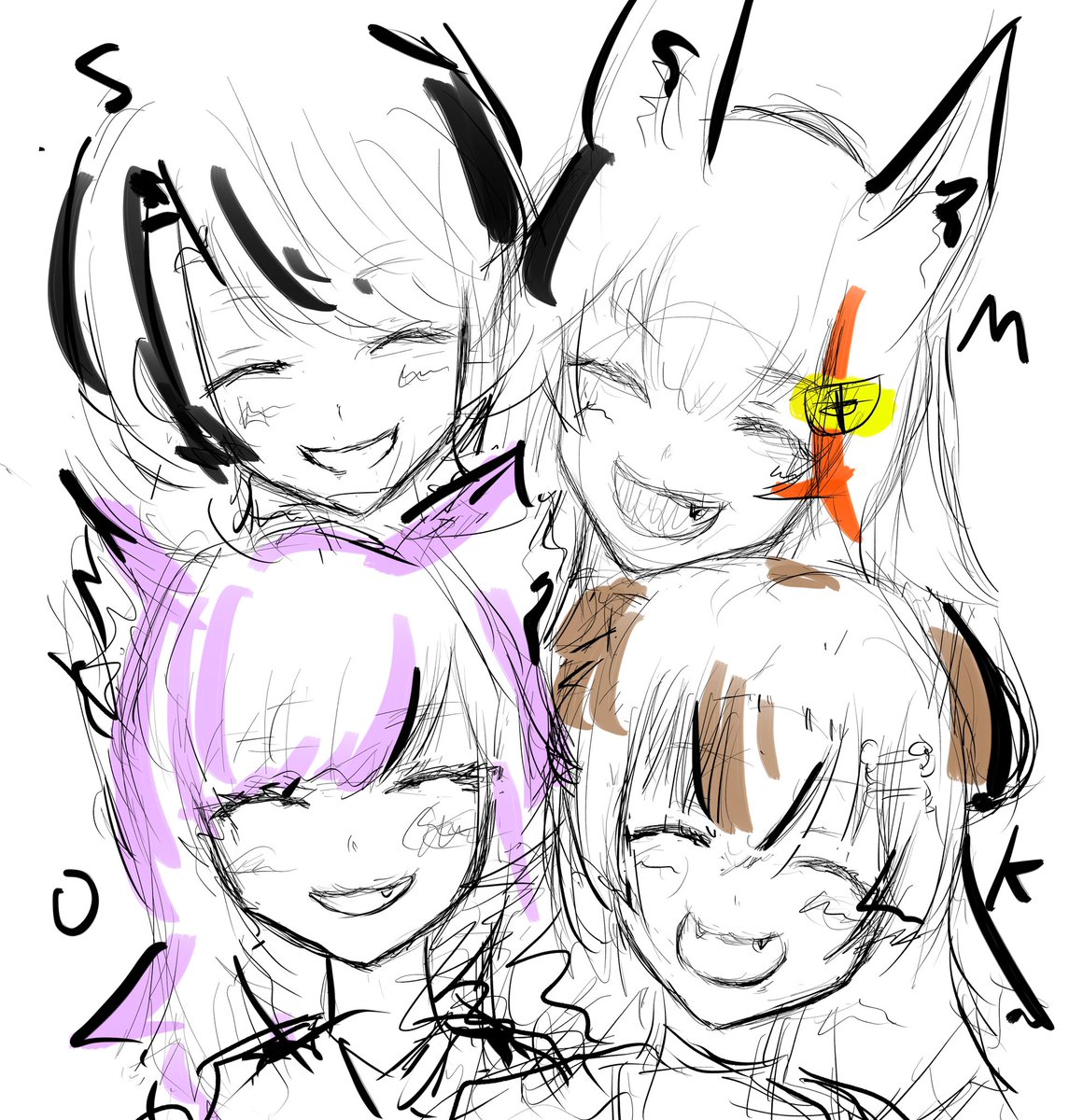 ラフ書き2 #OKFAMS #できたてころね #絵かゆ #絵フブキ #百鬼絵巻 #みおーん絵 #プロテインザスバル