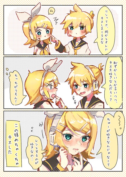 ほっぺちゅーしてるレンリンが見たくて描いた