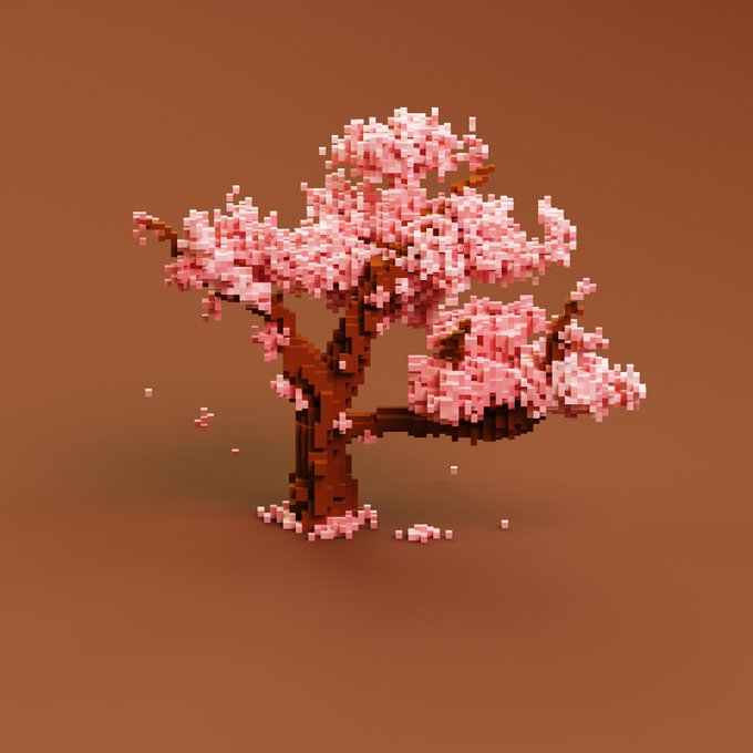🌸🌸🌸Do you miss the season full of cherry blossoms? #Magicavoxel #voxelart #voxels #voxelworld #voxelartist