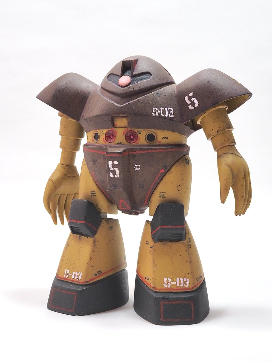 3 52 旧キット 1/144 ゴッグ 完成! ジャンク品を買ったため、左腕が短いのは御了承くださいw 増尾さんのイラストを参考に手描きマーキングしました。 黄土色は成型色のまま。 ハの字に立たせるため、脚の接続だけいじって他はまんまです。 合わせ目消せてないのは多目に見てまげちょん🙏 #ガンプラ 21/11/12 21:03
