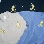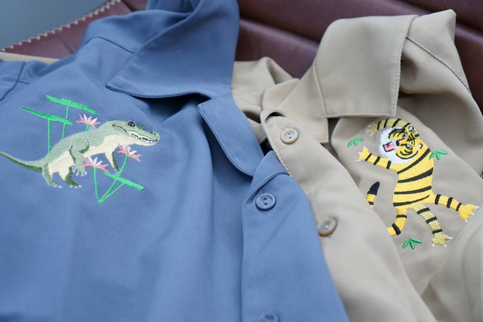 53 127 睡蓮と鰐、ちょっとコミカルな虎の2種類のシャツが完成しました。来週ぐらい発売です🐊🐅🐊🐅🐊🐅どう猛な生き物! 22/09/02 16:44