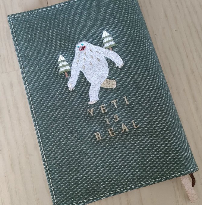 イエティの実在を主張できる文庫サイズのブックカバーにイエティイズリアルを入れることができました。特注の刺繍枠のギリギリのギリを攻めまくった商品です。近日発売。