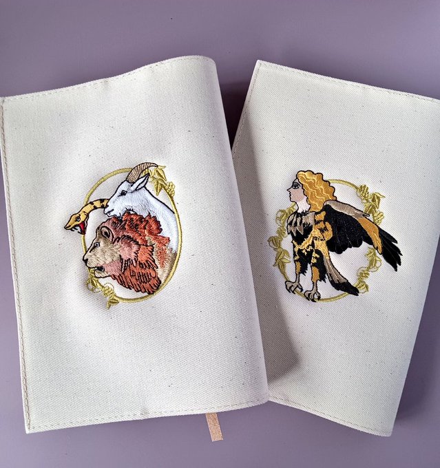 60 175 四六判ブックカバー(ハードカバーの新刊単行本が入るサイズ)の新作です。ギリシャ神話から「キマイラ」「ハルピュイア」 23/03/01 14:56
