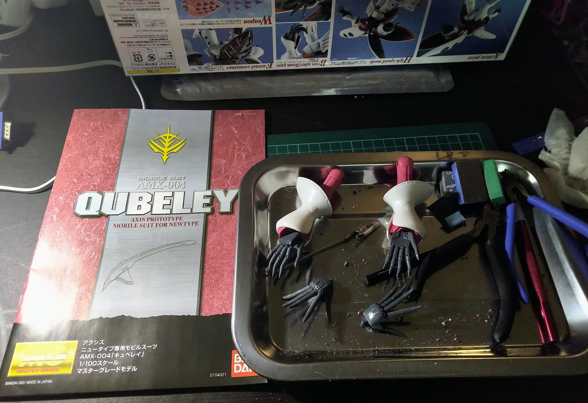 今日からMGキュベレイを制作中です! ゲート処理をしながらで、今日は両腕まで進みました。 指の処理が大変ですね^^; キレイに仕上げたい✨ #ガンプラ #ガンプラの画像を貼るとRTされると聞いて