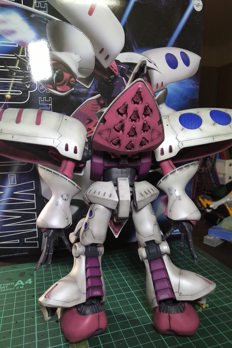 MG キュベレイ完成しました!! 初めてモールド追加に挑戦しました。 線がガタガタになったりもして苦戦しましたが、良い経験になりました(^^) イメージ通りに仕上がって満足です✨✨ #ガンプラ #ガンプラの画像貼るとRTされると聞いて