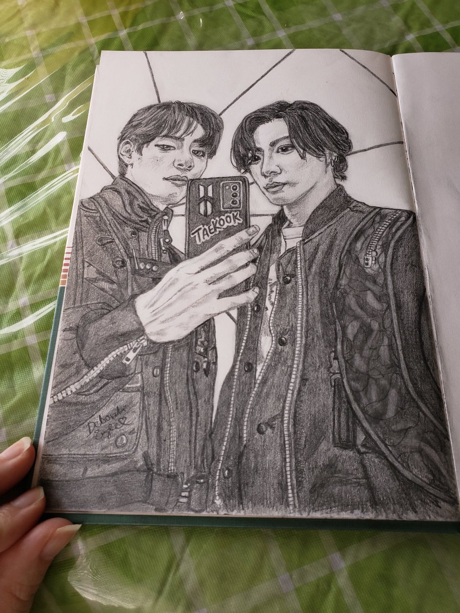 My first #Taekook drawing and first drawing of 2021 😁💜 I drew it in my #BTSSeasonsGreetings so I was nervous the whole time. #グクテテ #JungkookDay #BTSfanart #Taekookfanart #Taehyungfanart #Jungkookfanart #BTS #ARMY #BTSARMY #V #Taehyung #TaeTae #JK #Jungkook #Kookie