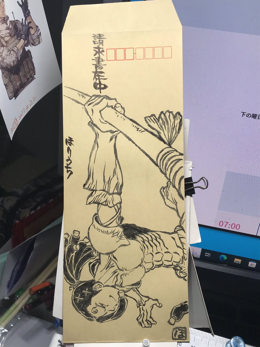 73 400 3期前半最終回だったのに何もないので、前に描いていた未発表の請求書袋でもおいときます。~モズ(Dr.STONEより)~一旦お疲れ様でした。(今月分はまだなのでこれは最後ではないかも…💦) 23/06/16 08:55