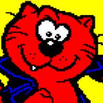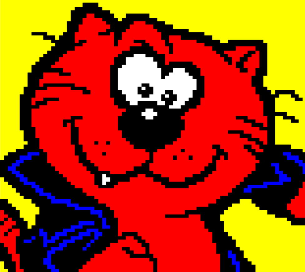 My favorite cartoon cat and my spirit animal, #BillTheCat (from the #BloomCounty strips by Berkeley Breathed) #teletext #pixelart #teletextart