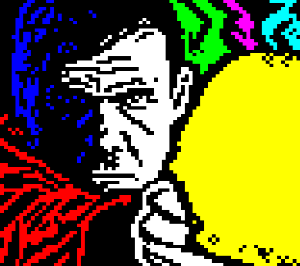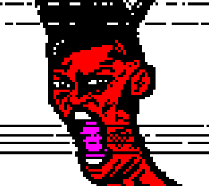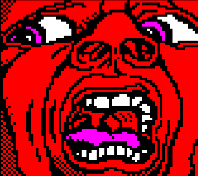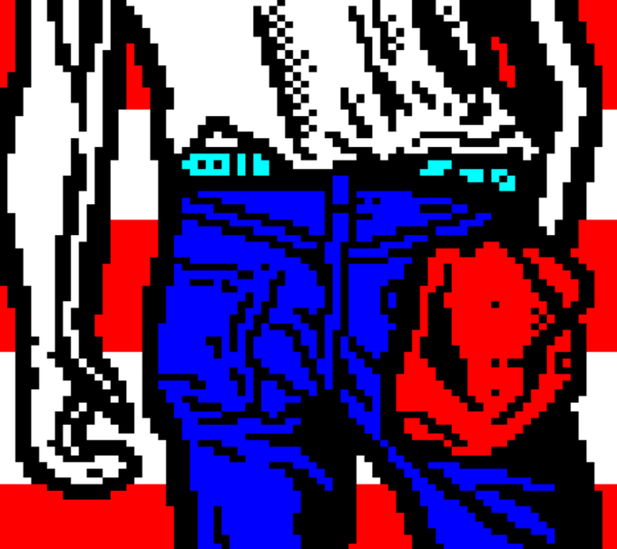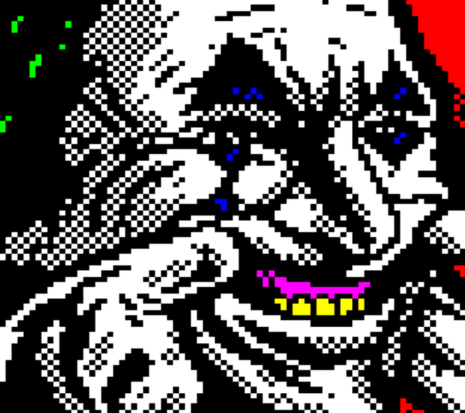 I got distracted by @MrBarryLewis and his latest video on Youtube, but here is #YosemiteSam #teletext #pixelart