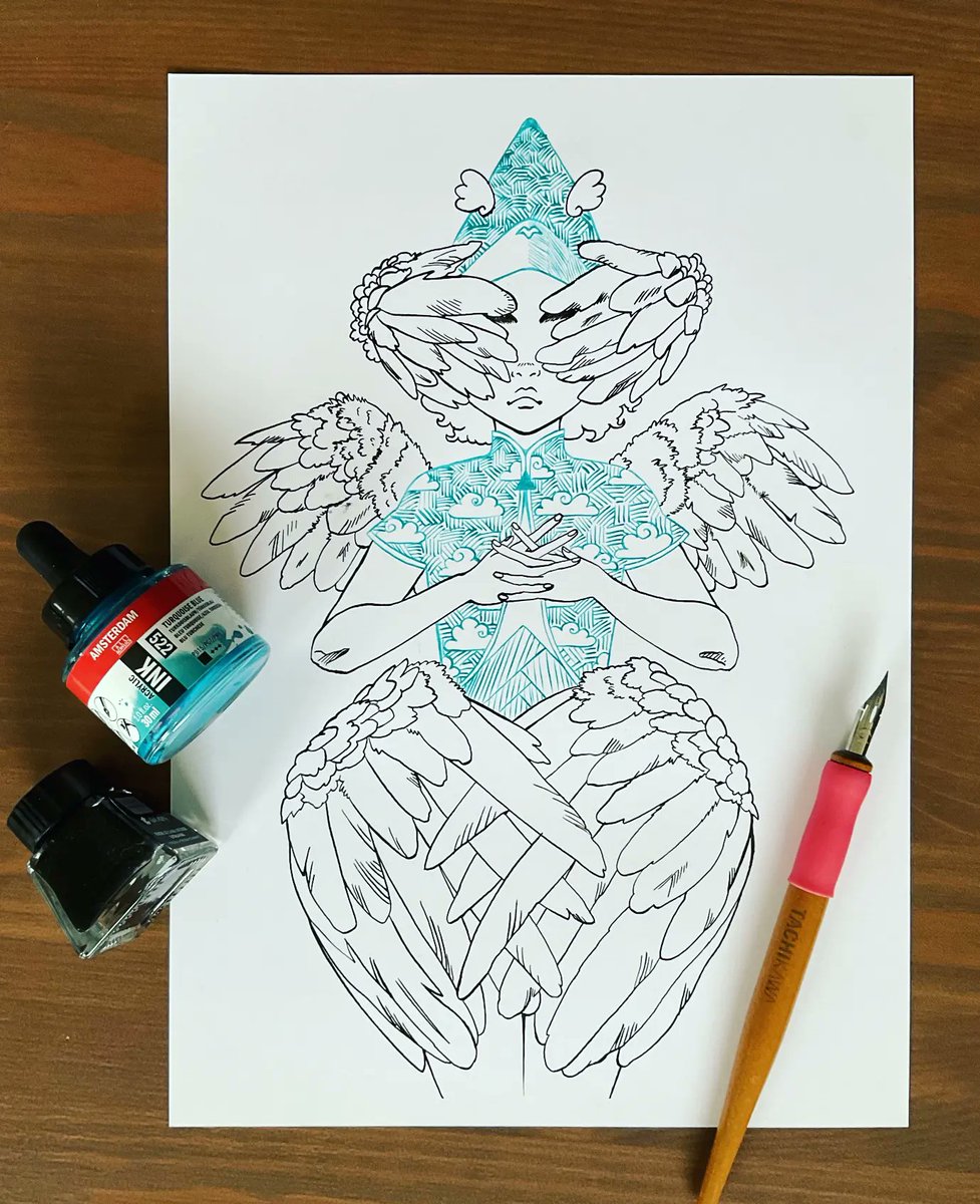 🕊✨️Wings✨️🕊 #Inktober #inktober2022 #peachtober22 #peachtober