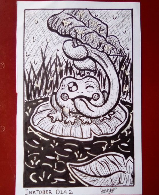 #inktober2022 ahora una ranita en honor a mi bro @ReyWolf24 ese es su espíritu animal #inktober #inktoberday2 #anime #rana #kawaii #art