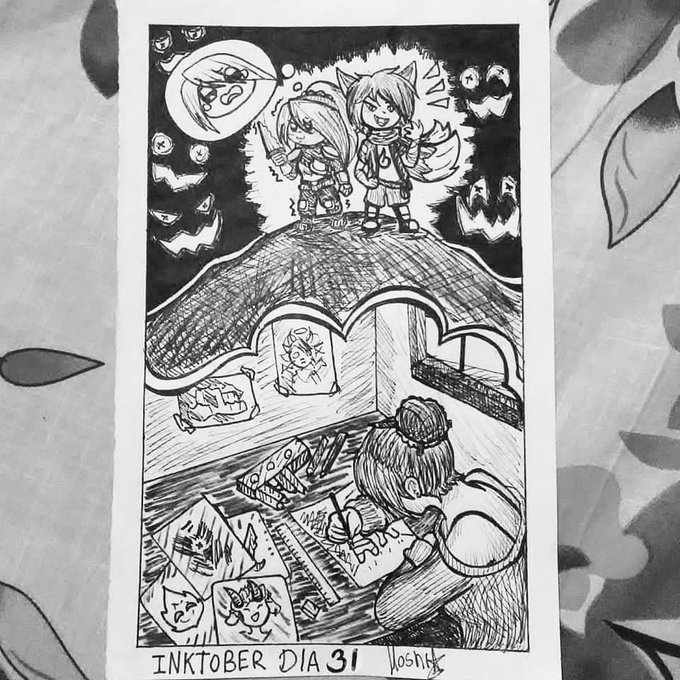 #Inktober día 13 algo lindo para hoy UwU #zorro #dibujo #inktober2022day13 #inktober2022 #luz #oscuridad #demon #chibi