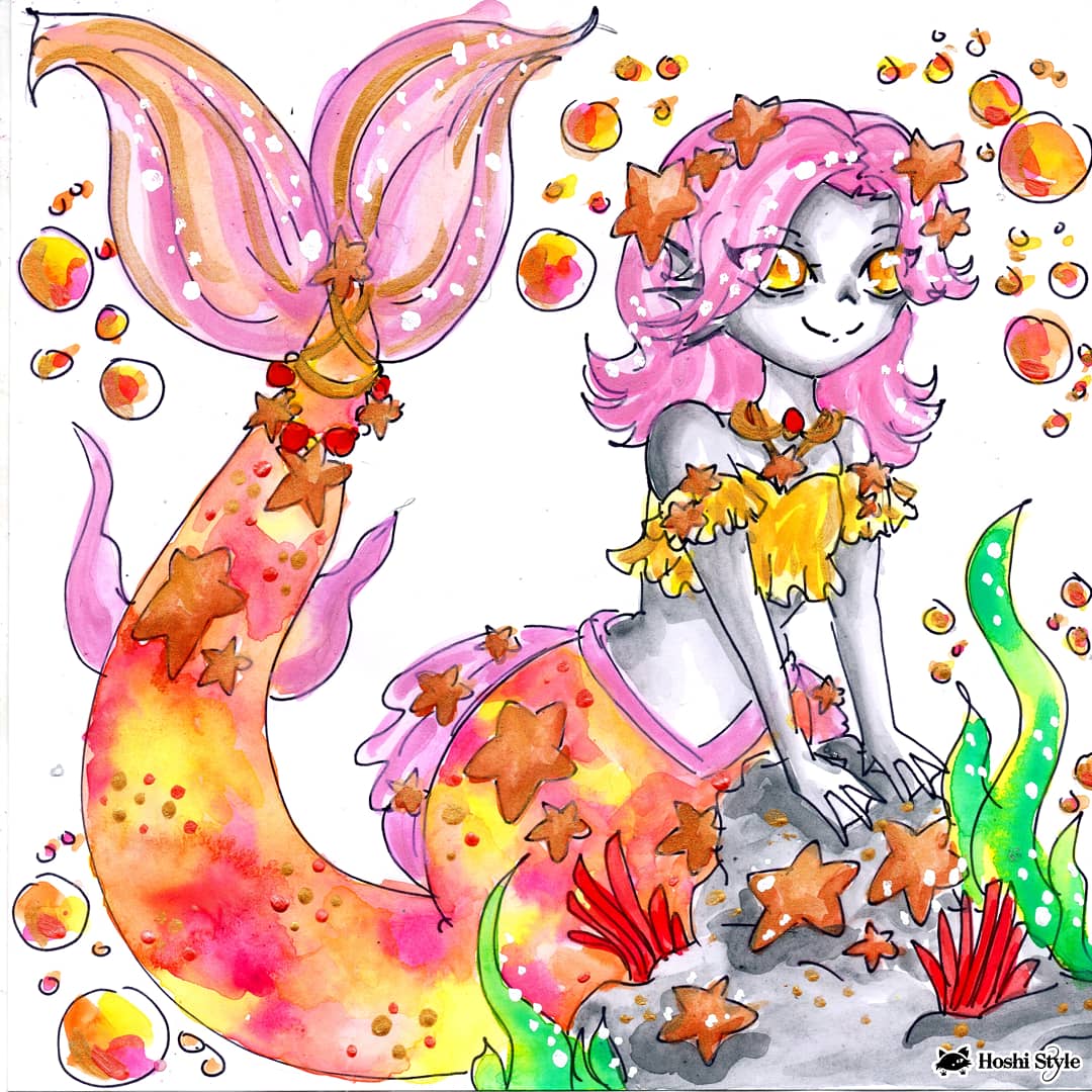 #Mermay day 25: Sea Star La verdad no es tan estrella marina jajajajs pero me gustó mucho #mermay2020 #realsmermay #mermaid #illustration #drawing #drawingoftheday #tradicionalart #watercolor #ink #HoshiStyle #HoshiVillalba