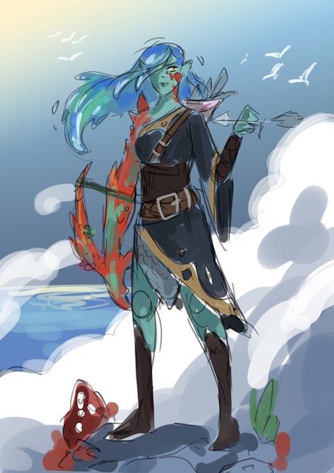 #Rolltober day 1 Cursed - water genasi - ranger : ) That will be just sketches ^^" #DnD #DnDcharacter #dndart