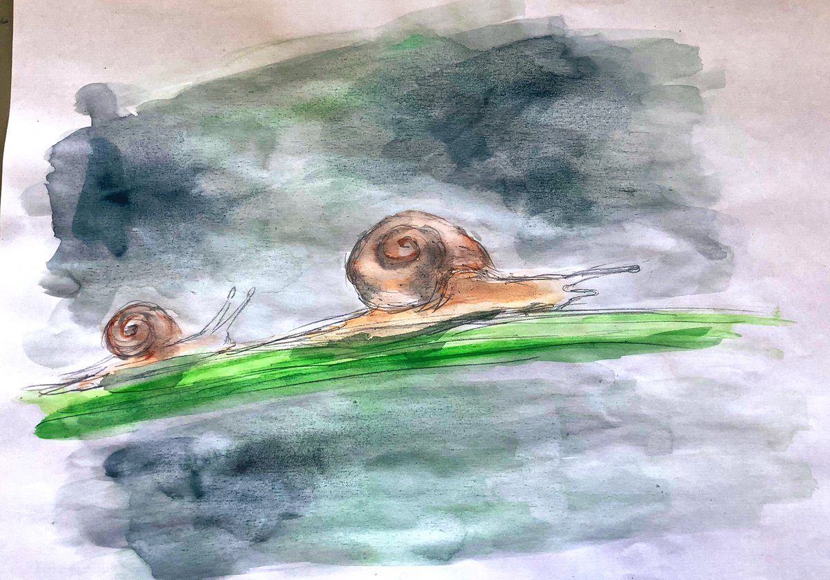まだまだ早いけど最近よく降る気がするー って事で蝸牛。 #水彩 #イラスト #アナログ