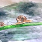 0 2 まだまだ早いけど最近よく降る気がするー って事で蝸牛。 #水彩 #イラスト #アナログ 22/04/22 22:52