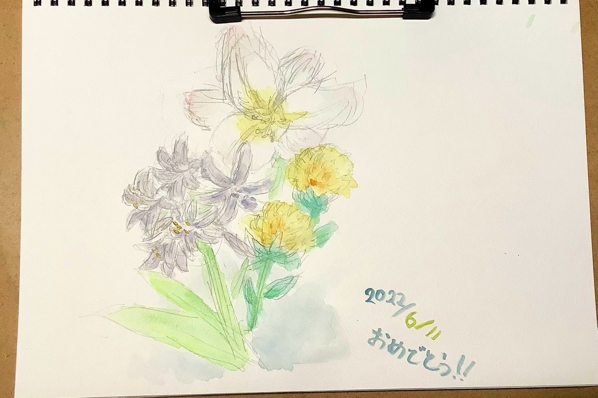 0 3 友達に描いたおたおめイラスト 思い出したのが朝で急拵えなせいで雑くなってしまった。 次はもう少し早い段階で思い出せればいいなぁ… #イラスト #アナログ #水彩 22/06/11 14:07