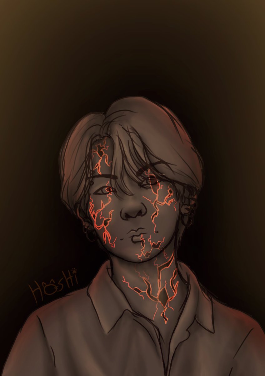 Today's word was really fun to do 😌🖤🧡 @lhazareen_g Cracks (11 October 2022) #jungkook #inktober2022 #lhaztober #bts #fanart