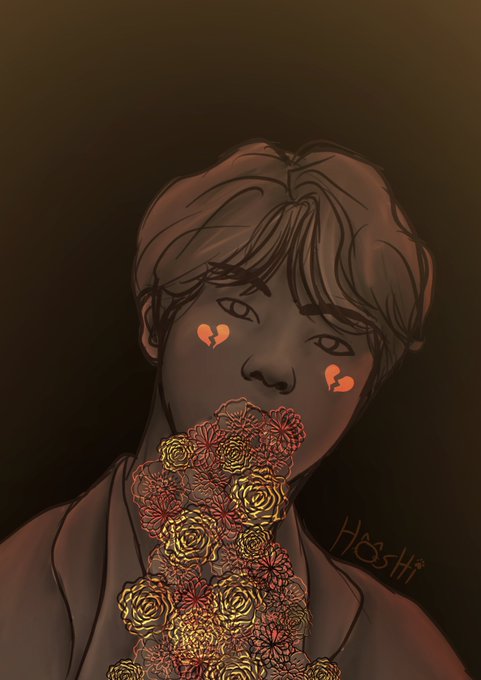 Then who better than Jin for a love disease? 🥰🖤🧡 @lhazareen_g Hanahaki (18 October 2022) #bts #seokjin #drawing #lhaztober #inktober2022