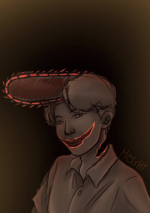 And the last one which is today's word is in reference to the manga Chainsaw man, I specify that I haven't watched it and hope not to offend the fans 🧡🖤 @lhazareen_g Sharps (18 October 2022) #Jhope #Fanart #Bts #chainsawman #inktober #lhaztober