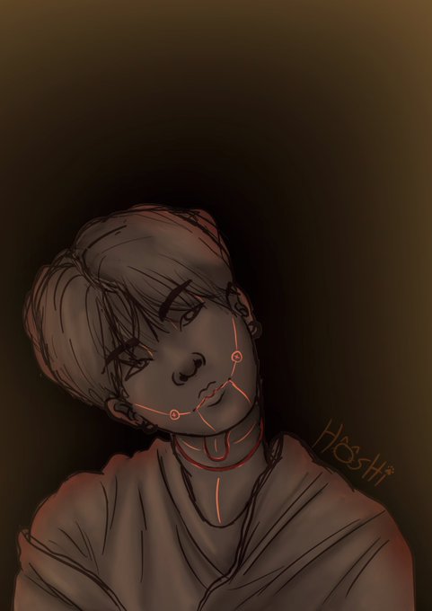I'm pretty proud of my attempt 🧡🖤 @lhazareen_g Skull (26 October 2022) #yoongi #fanart #lhaztober #inktober2022