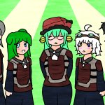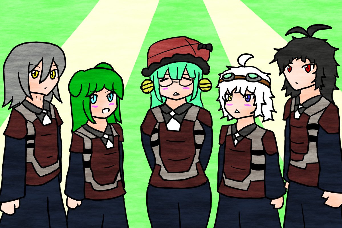 3 14 #今月描いた絵を晒そう 職員とかざくアクとか自創作とか… 結構頑張ったやつかな。(背景は死んでるが) 22/02/28 17:51