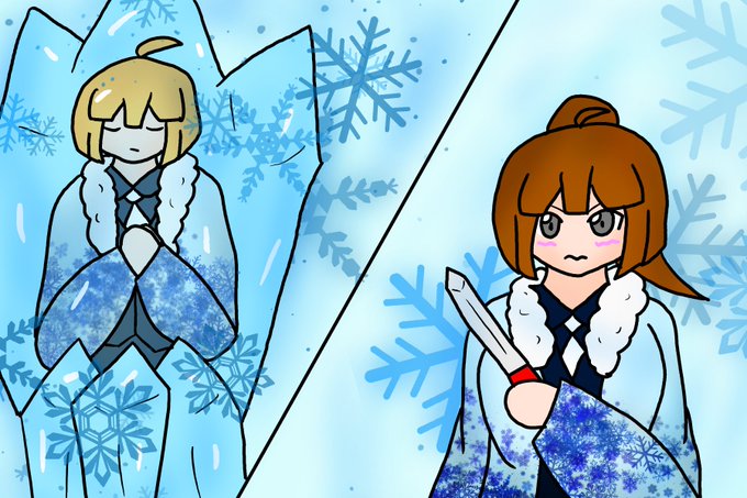 11 43 #ロボトミー版深夜の真剣お絵描き60分一本勝負 氷かけらでラマルコスとエマ。 22/05/14 23:00
